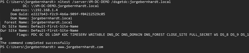 You can also use the nltest command-line tool. By running the following command on a domain controller, you will get the following result: