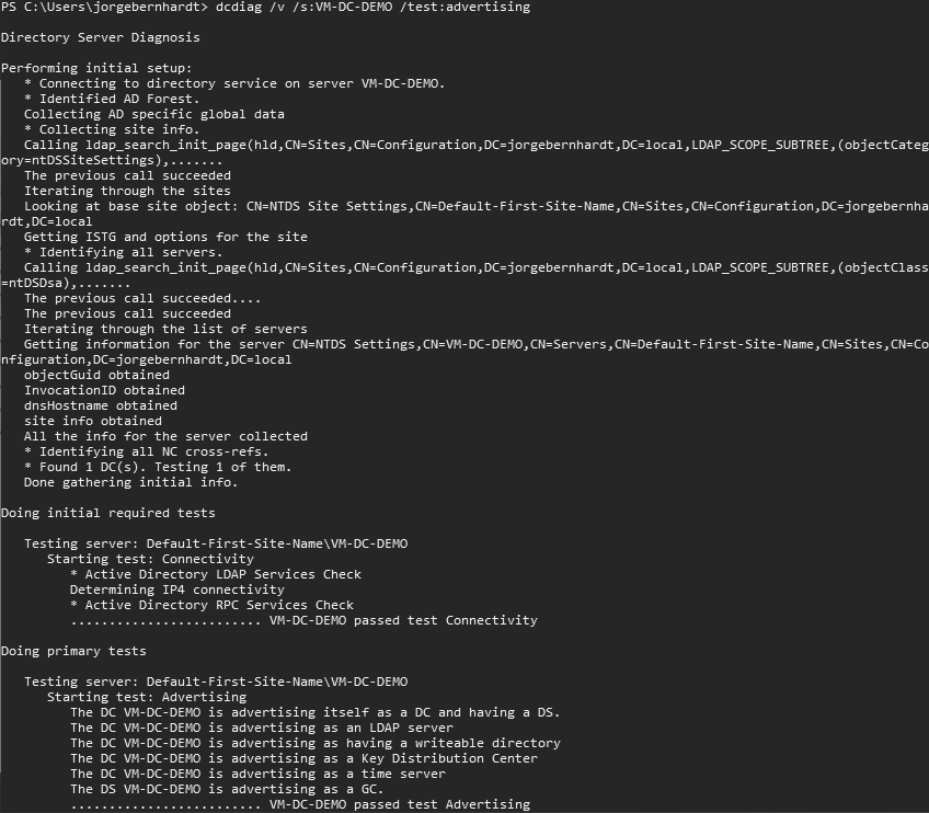 dcdiag /v /s:<_DomainControllerName_> /test:advertising