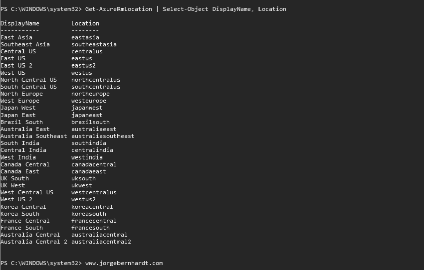 Get-AzureRmLocation `
