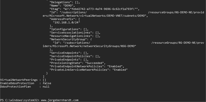 My recommendation is to apply the NSGs at the subnet level whenever possible to facilitate the administration of your virtual network. You must first verify that the subnet you want to associate is not already associated with another NSG. To do this you must use the Get-AzVirtualNetwork cmdlet with the following syntax.