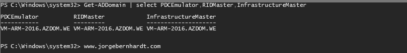 | select PDCEmulator,RIDMaster,InfrastructureMaster